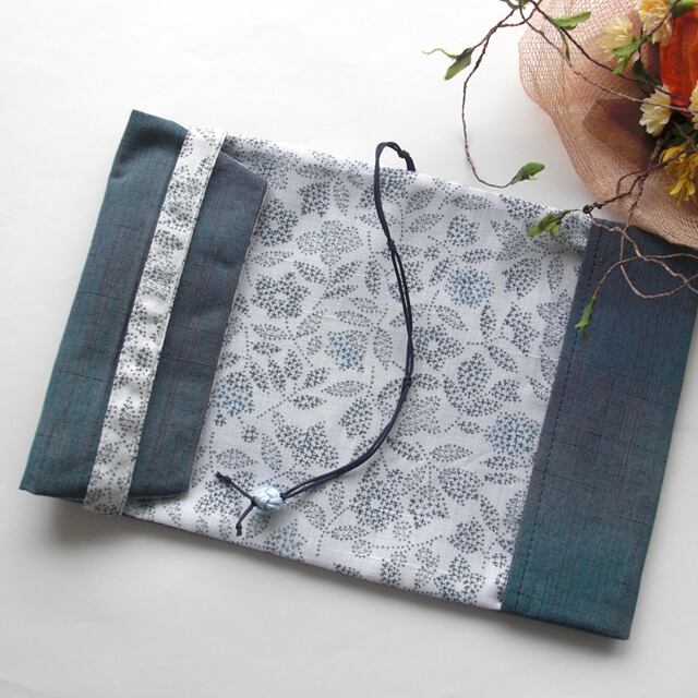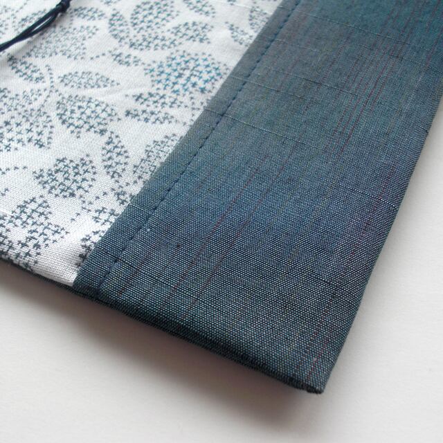 着物の生地を表面に、裏面は浴衣の生地を使用しています。光沢のある着物生地で、光の当たり方によって色が変化します。