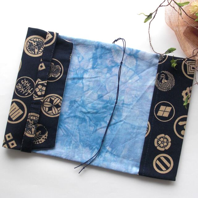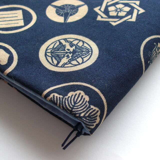 新書サイズのブックカバーです。定番の柄となりつつある家紋の柄。こちらも人気のある柄ですね。